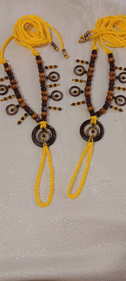 Sandalias pies descalzos amarillo, coco, huesos, madera