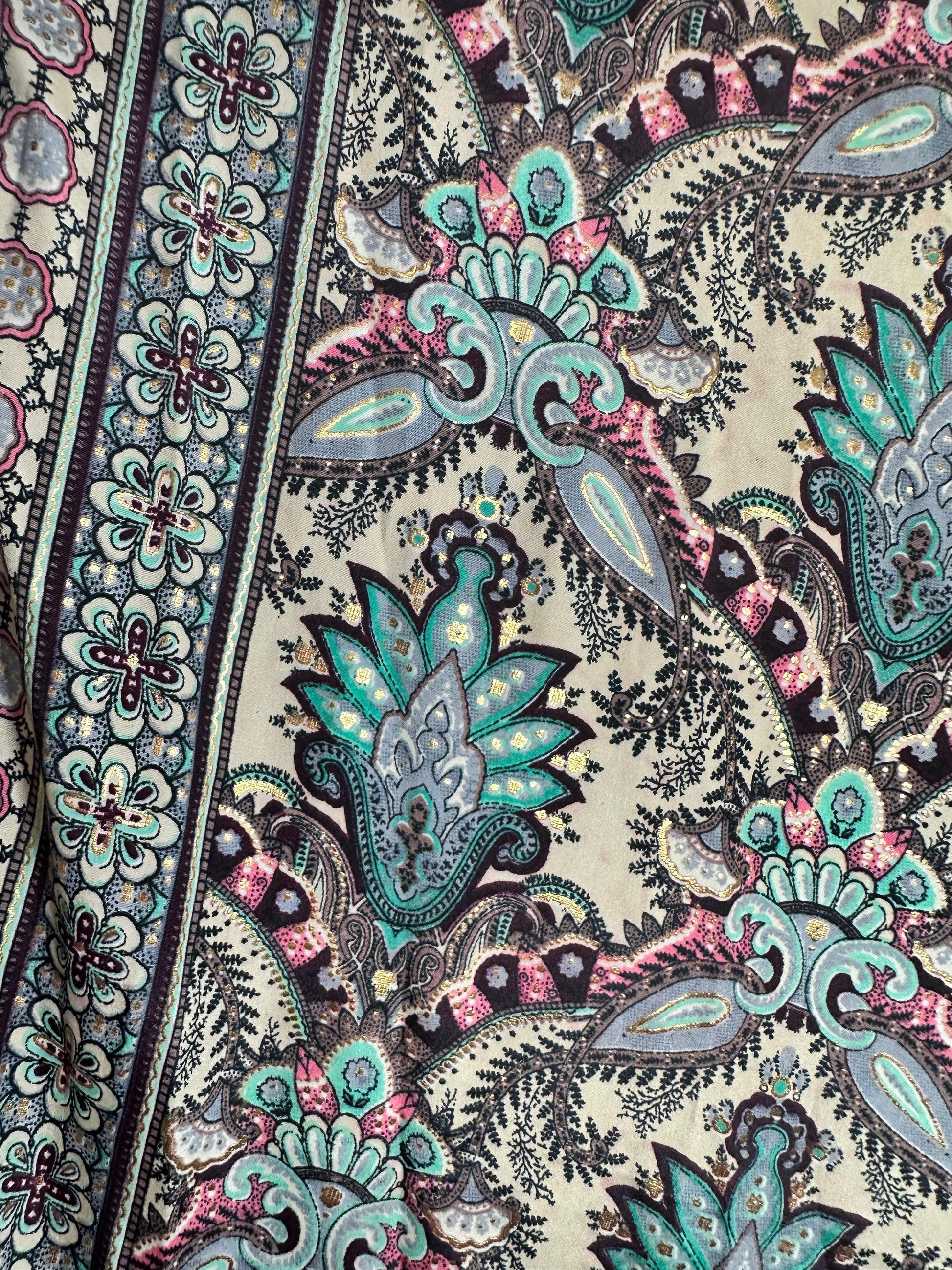 El vestido Anny es una elegante pieza de color crema, con un sutil estampado dorado, rosa, turquesa y morado, con un escote pronunciado tanto al frente como en la parte posterior que cuenta con elástico que se ajusta a cualquier talla. Cuenta con prácticos bolsillos laterales que lo hacen perfecto para diferentes actividades y proporcionan comodidad. Además, su diseño versátil lo hace ideal para mujeres embarazadas, ya que se adapta a todas las tallas. Agrega un toque fresco y bohemio a tu guardarropa con este hermoso vestido one size.