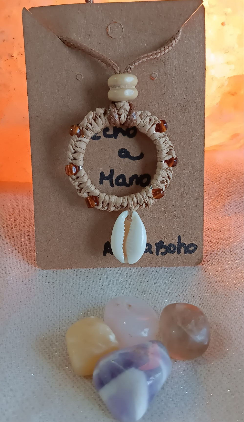 Lleva la belleza de la naturaleza contigo con nuestro collar macramé ajustable. Perfecto para las amantes de la playa y la conexión con lo natural. Recuerda que lo imperfecto también puede ser hermoso. ¡Haz una declaración de estilo y filosofía con este collar único!